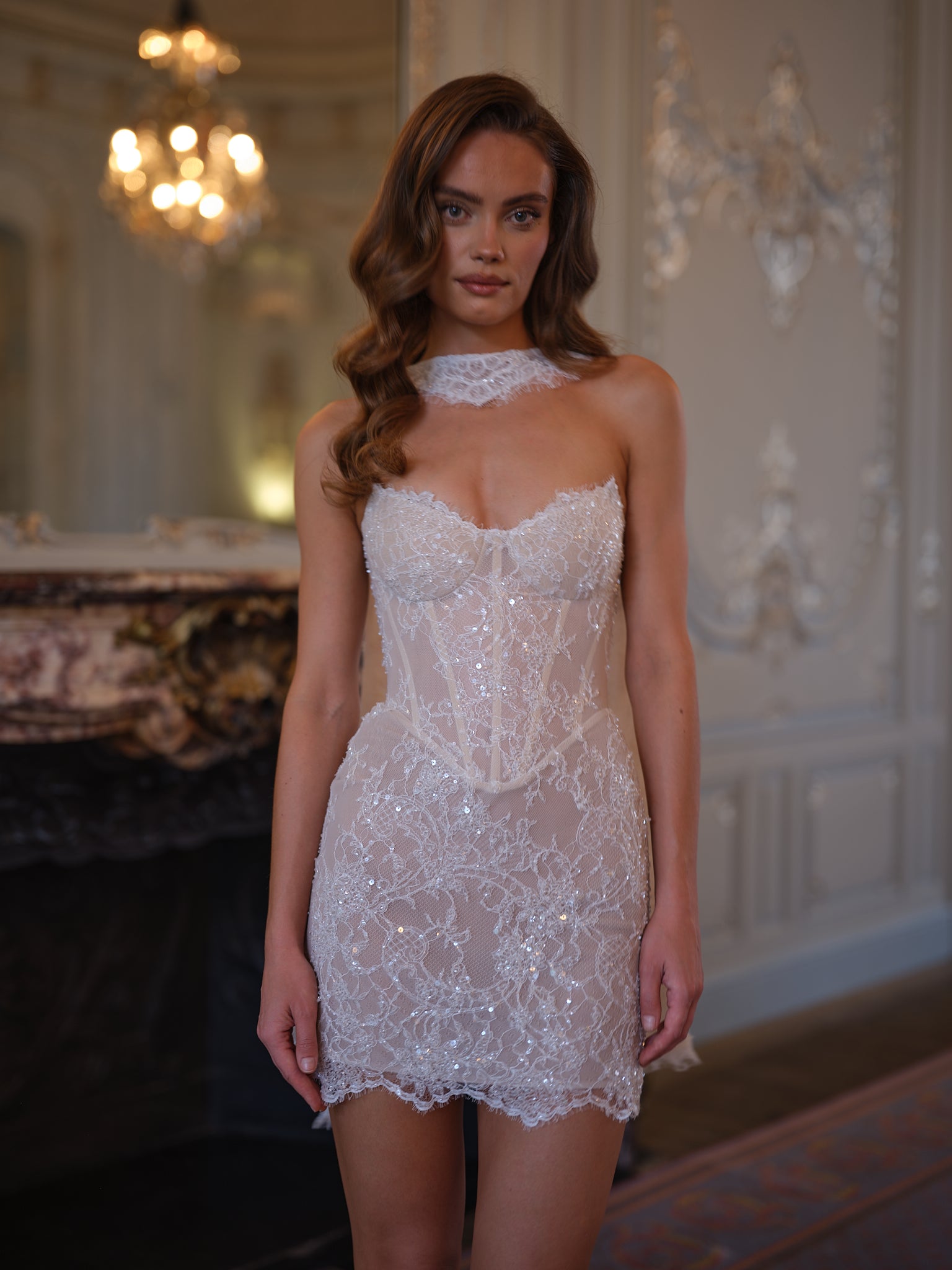 The Jolie Mini is where high-fashion energy meets bridal enchantment—sparkling, sensual, and unforgettable.
